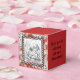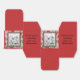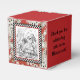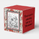 Caja de favores de estilo clásico cuadrado rojo con una Alicia blanca y negra vintage en el País de las Maravillas, en dos lados, de Alicia bajo ataque de las Tarjetas en un marco de tablero de ajedrez en blanco y negro sobre un fondo de juego de cartas en rojo. El texto del personalizable en los lados dice "¡Gracias por celebrar conmigo en el país de las maravillas!" Vea la invitación, sobre, bolsas de regalo, pegatina cuadrado y papel de envoltura correspondiente. Vea toda la colección de la caja de favores de Wonderland en los TOUCHES ESPECIALES | Sección de favoritos de partido.