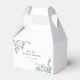 Esta caja de favor de baby shower bridal presenta elegantes flores azules polvorientas y blancas y una fuente minimalista elegante. Este estilo es perfecto para cualquier evento simple y clásico.