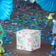 Pájaros de rosa brillante, perros pequeños azules, banderas y flores rosadas en un fondo azulado y blanco a rayas, un diseño divertido, colorido, alegre y caprichoso que seguro traerá sonrisas en productos para el hogar, la oficina y el uso personal, incluyendo fundas de dispositivos electrónicos, bolsas, tazas, corredores de mesa, cajas y bolsas de regalo, latas de caramelos, favores de goma, placas y pañales de papel y pañales, pegatinas, ¡mousepads, lámparas, cartas de juego, relojes, carteras y muchos otros artículos!