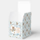 Cajas favoritas para un fiesta aviador de oso bebé, con un oso pequeño volando un avión. Este diseño es personalizable y personalizado: puede cambiar el nombre, la fecha, la dirección y otro texto en este diseño. Tonos de color azul y marrón.