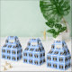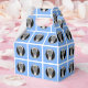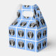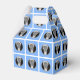 Único fiesta de lacrosse o caja de preferencia de evento con un patrón de palos laxos sobre fondo azul claro.