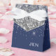 Cajas de regalo de papel con monograma y nombre inicial plateado y azul marino con brillo y purpurina. Esto hace que el regalo perfecto para cumpleaños de 16, boda, despedida de soltera, aniversario, baby shower o fiesta de soltera para alguien que ama el glamour de lujo y los estilos elegantes.