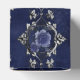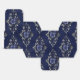 Deslumbrante caja de patrón de damasco floral vintage en acentos de azul marino y plata..