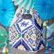 Un hermoso diseño vintage de Azulejo azulejos patrón español y portugués en azul marino, blanco y toques de naranja verde y claro. El diseño se puede personalizar a su monograma correspondiente. Un bonito sabor mediterráneo perfecto para la decoración de verano. El diseño de mosaico geométrico rústico perfecto, ideal para cualquier ocasión.