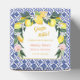 Este encantador, hermoso y fresco diseño de cajas de regalo para baby shower o boda con baldosas azules de limón cítrico mediterráneo italiano presenta vibrantes limones y rosas pintados al estilo acuarela, complementados con un intrincado patrón de baldosas azules mediterráneas italianas con la inscripción "Grazie Mille" en caligrafía de letras doradas y letras rosadas. Estas cajas de regalo prometen traer el encanto del Mediterráneo a tu fiesta de boda. Fácilmente personalizables y editables. Puedes transferir este diseño a una variedad de productos sin esfuerzo.