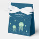 Añade tus favoritos de Baby Shower en estas adorables y personalizadas cajas de favores con medusas turquesas. Personalice el texto con su propia información. Ilustrado y diseñado por Patricia Álvarez.