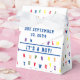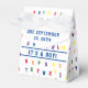 El diseño tiene un fondo de alfabeto con esténcil brillante y colorido como el de los imanes de los refrigeradores que todos conocemos. La frase "¡Es un NIÑO!" se muestra en letras azules en medio del frente de diseño. La solapa superior le dice a todo el mundo cuando el Bebé está a la espera. Cuando se abre, el nombre del bebé aparece en la misma letra azul. Perfecto para un Baby Shower con temática ABC! Diseñado para coordinar con la "colección Baby Shower ABC".