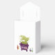 Cute tema de halloween chica caja de favores para bebés con un ilustracion de caldero de bruja morada que aviva humo verde con velas y pociones.