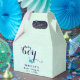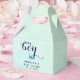 Esta adorable caja de bienvenida para una ducha de bebé tiene un bonito tema oceánico con un diseño de ballena azul. La caja está decorada con las palabras "Baby boy" en un color azul marino profundo, y hay una ballena azul que pulveriza alegremente corazones sobre un fondo azul claro. Lo que lo hace aún más especial es que incluye el nombre de la futura madre, agregando un toque personal a la celebración.