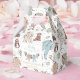 Estas cajas de favores para Baby Shower de invierno o temporada navideña neutrales en cuanto al género presentan ilustraciones lindas y dibujadas a mano de bodysuits de pijama de Navidad y animales de peluche en una cuerda para tender y el nombre y evento personalizables. Fondo blanco elegante.