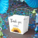 Esta bolsa/caja de favores, muy bien diseñada, capta la calidez y belleza de la temporada de otoño, con un bonito girasol en el medio. La bolsa exhibe un girasol que evoca el ambiente acogedor y acogedor del otoño. El girasol, pequeño pero luminoso, aporta un toque alegre, haciendo que esta bolsa sea perfecta para una ducha de bebé. El texto se muestra en un tipo de letra delicioso y fácil de leer, lo que mejora el tema natural de la caja favorita. Personalizar la caja de favores con tu nombre, apellido, fecha de evento y otros detalles esenciales, asegurándote de que refleje perfectamente tu celebración.