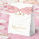 En esta playa, o en la zona náutica, hay una caja de favores para la ducha de bebé decorada con una estrella de mar ilustrada con oro, así como las palabras "Baby Shower" en un estilo de letra dorado y moderno. El nombre y la fecha se pueden personalizar para el evento especial de la futura madre (o futuros padres) y hay un texto opcional, un área de mensajes en la parte posterior del cuadro. El color de fondo y el color de la cinta se pueden personalizar a su gusto. Es ideal para una ducha infantil de temática marina o de playa.