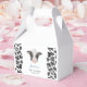 Caja de favores de una ducha pequeña y rústica con ilustracion acuático de una vaca bebé.