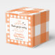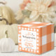 Celebra la próxima llegada de una pequeña y dulce calabaza con este encantador diseño de baby shower neutral en cuanto al género. Con una simple calabaza naranja con corazones marrón oscuro y texto, sobre un fondo de patrón de cuadros naranja y blanco acogedor, este tema rústico inspirado en el otoño de granja es perfecto para dar la bienvenida a un bebé, ya sea niño o niña.