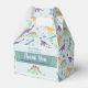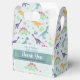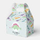Esta caja de favores para bebé de niños, de color azul lindo y caprichoso, presenta un patrón de personalizado de dinosaurio, con plantas de t-rex, estegosaurus y jungla jurásica, y puede ser personalizada con los nombres de los padres y un breve mensaje de agradecimiento. La perfecta caja de favores personalizada con el tema de los dinosaurios para su ducha de bebé de parejas de amigos.