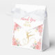 Elegante diseño de rosas rosa rosadas florales con bailarina dorada dejando remolinos dorados mientras salta y gira. Esta caja tiene un espacio para una nota de agradecimiento personalizada debajo de la solapa.