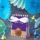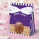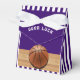 Creativos regalos de fiesta con tema de baloncesto con un fondo morado. Edite texto para personalizar fácilmente para la fiesta de cumpleaños del baloncesto, el día del partido, la noche de la tercera edad u otro evento temático.