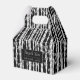 Esta caja de favores de bambú tiene un estilo moderno de mediados de siglo de un bosque de bambú en tres colores. Este diseño tiene pinceladas de cepillo secas retro para resaltar el diseño de bambú. Este patrón es perfecto para cualquiera que ame el MCM y esté teniendo una playa o un boda hawaiano con temática tiki. Puede hacer que el patrón sea más pequeño o más grande. Personalice este su propio mensaje de agradecimiento, sus nombres y el año.
