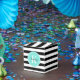 Caja Para Regalos Bandas negras y blancas con monograma turquesa
