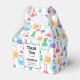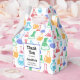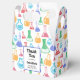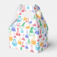 Pequeña caja de favores con un patrón divertido y colorido. Los investigadores científicos vivirán con vasos y frascos de diferentes formas y tamaños en colores alegres y brillantes.