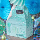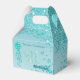 The birthday favor box features gleaming Falling Teal Blue Glitter on Teal Blue gradient with Bright Stars. The Gold and Teal Blue Glitter