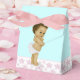 Cajas favoritas para la ducha de bebé afroamericanas de color rosa y azul verde azulado. Puedes añadir texto, cambiar el color de la proa y añadir un color de fondo de tu elección a esta linda caja de favores de la ducha de la princesa étnica rosa.
