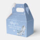 Crea tus propias y elegantes cajas de favores de partido personalizadas usando una plantilla de Cenicienta princesa DIY que puedes añadir un nombre, celebración, fecha y un breve mensaje personalizado de amor y agradecimiento. El original cuento de hadas de Raphaela Wilson representa una bella zapatilla de cristal de Cenicienta / zapato de cristal con una mariposa caprichosa, un carro tirado por caballos en forma de calabaza y un reloj mágico a punto de llegar a medianoche. Las estrellas purpurinas falsas también agregan brillo a estos cuadros de favores de plantilla. Si prefieres una tipografía alternativa, puedes editar el guión de caligrafía y las fuentes modernas en un estilo que mejor te acomode. Úsalos como regalos personalizados de agradecimiento para los invitados que ayudaron a hacer que tu gran día resplandeciera. Dado que todo el texto es editable, estos favores de fiesta pueden complementar maravillosamente una vez con un boda de tiempo, una Cenicienta dulce 16, una quinceañera de 15 años (XV / 15 años), una ducha de novia de cuento de hadas, una princesa de ducha de bebé para un chica, u otro momento mágico. Diga: "gracias por venir" de una manera memorable con estas elegantes cajas de favores de la princesa! Categoría: mini caja personalizada para favores de caramelo; bizcochos azules de quinceañera con mariposas; y pequeñas cajas de favores de boda para sus/mis membaños. Cenicienta colores temáticos fiestas: azul claro suave, azul polvoriento pálido pastel, gris claro, gris oscuro, plata y blanco.