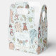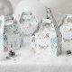 Estas cajas de favores neutrales de género en invierno o temporada de fiestas en Baby Shower cuentan con adorables ilustraciones hechos a mano de Navidades con trajes de pijama y animales de felpa en un tendedero y nombre y evento de personalizable. Elegante fondo azul menta.