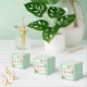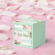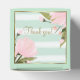 Caja de favor de bebé shower de menta y rosa con fondo de rayas de acuarela y acentos florales suaves rosados. Esta hermosa caja de favor de bebé shower de menta, rosa y dorado se puede personalizar con el texto de su elección en el estilo de letra y color que prefiera. También puede cambiar el color de fondo y eliminar todo el texto.