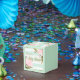 Caja Para Regalos Bebé shower de rayas de menta y rosa