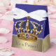 Elegante caja de favores de la ducha de la corona azul real y oro príncipe corona. Estas hermosas cajas de favores para bebés de príncipe azul y oro pueden ser personalizadas con texto y puedes cambiar el color de la cinta.