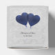 Personalice una caja de favores de boda única para los invitados con esta caja de favores de boda de los globos del corazón azul. El diseño de la caja favorita incluye un par de globos cardíacos en un delicado fondo de damasco de encaje. Personaliza con los nombres del novio y la novia junto con la fecha del boda. También hay material de boda adicional disponible con este diseño.