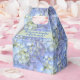 Caja de favores florales azul con el texto personalizado "gracias" para bodas, duchas de novias o fiestas de cumpleaños para ella. Las flores azul claro de bonito cubren esta caja con un asa. Incluya su propio mensaje, en una o dos líneas, en la parte superior del cuadro. El texto de la muestra dice: "Gracias por estar aquí para compartir nuestra alegría".