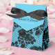 Bellas cajas de favores de boda azules, negras y verde azuladas. Puede cambiar o quitar el texto, cambiar la cinta de opciones para personalizar esta elegante caja de favores de boda azul y negro verde azulado.