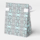 Hermoso encaje plateado y verde azuladas cajas de favores de boda azules. Puede cambiar o eliminar el texto, cambiar el color de fondo y la cinta para personalizar esta elegante caja de favores de boda azul y plata verde azulada.