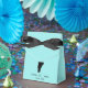 Estos pequeños y dulces cajitas de mapas son perfectos para dar a sus huéspedes cuando se registran en su hotel. Llena de pequeños dulces que pueden disfrutar antes de que comiencen las festividades. O bien, envíenlos a casa desde la recepción con un aperitivo de medianoche. Puede cambiar el color de fondo para que coincida con el tema boda.