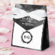 Este diseño presenta una disposición elegante y sencilla de las iniciales personalizadas de la novia y el novio. Las iniciales de las parejas están rodeadas de un anillo de acuarela negro. Este diseño en blanco y negro es sencillo pero elegante en todos los sentidos. Esta sencilla combinación de colores crea un estilo sofisticado, moderno y de moda. Elegante diseño de caja de favores de boda con elementos modernos. También hay disponibles invitaciones de boda coincidentes y otros artículos de papelería.