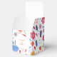 Moderna pintura de acuarela botánica de flores silvestres azules y naranjas sobre un fondo blanco. Una magnífica caja de favores de coordinación para coincidir con su fiesta. Puedes alterar el texto para que se ajuste a tu celebración.