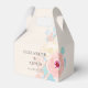 Los suaves florales pastel combinan suaves tonos de agua en esta romántica caja de favores, una hermosa combinación para bodas de primavera, duchas de novias o celebraciones en el jardín. Con peonías pintadas a mano y rosas de color negro, crema y azul, el diseño se siente fresco y atemporal. Personalízalo con nombres y una fecha de boda para añadir un toque cálido y personal. La forma gable facilita el montaje y es perfecta para pequeños regalos o dulces gracias. Encantador, delicado y lleno de amor - un detalle poético para su celebración.