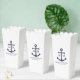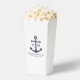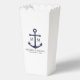 Añada un toque elegante a su boda náutico con esta caja de bienvenida clásica de mariscos de ancla azul marino. Diseñado con un ilustracion de ancla azul marino, cuenta con un monograma, nombre y fecha boda personalizados para novias y novios en una fuente serif azul marino sobre un fondo blanco. Perfecto para bodas náuticos, bodas en la playa y más.