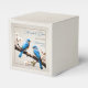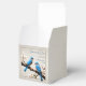 Personaliza una caja de favores de boda única para los invitados con esta caja de favoritos de bodas de Bluebirds. El diseño de la caja favorita presenta un par de pájaros planos que descansan sobre una rama de madera con flores de primavera sobre un fondo texturado de papel. Personaliza con los nombres del novio y la novia junto con la fecha del boda. También hay material de boda adicional disponible con este diseño.