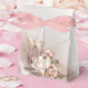 Hermosa tarta de boda rubia y cajas de favores de bodas de champán. Puedes publicitar texto y elegir el color de la cinta en esta elegante caja de bienvenida de champán.