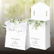 Caja de regalo de boda de corazón floral verde elegante personalizada con sus nombres y fecha de boda. Diseñado por Thisisnotme