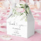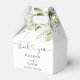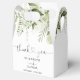 Caja de regalo de boda de corazón floral verde elegante personalizada con sus nombres y fecha de boda. Diseñada por Thisisnotme©