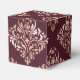 Caja de regalo de boda de damasco de color burdeos vintage (marsala) y falso oro rosa para acompañar la colección de abajo.