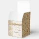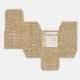 Elegante encaje blanco, cinta y flor en la caja de favores de boda burlap con encaje blanco sobre lino natural burlap o hessian con dos cintas de satín cruzadas y flor en beige con brillo metálico y una joya blanca. Texto en castaño. Hay que destacar que los encajes, las bujías, las flores y las joyas están todos "impresos" y no son verdaderas telas, gemas o cristal. Este elegante, sofisticado y romántico diseño, de estilo rústico, forma parte de un conjunto boda y es perfecto para una moda de campo o para un boda de primavera occidental, verano o otoño con paleta de colores neutros.