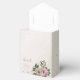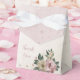Caja de favor de boda única con flores rosadas y champán románticas y hojas verdes.