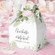 Caja de regalo de boda elegante con hojas de vegetación, nombres de guión de firma chic y fecha especial. Puedes personalizar con tu propio mensaje de agradecimiento en el reverso. ¡Una forma perfecta de decir gracias a tus invitados! Diseñado por Thisisnotme©