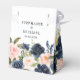 La hermosa caja de favores de bodas florales de boho presenta gráficos florales de acuarela pintados a mano / rosas en ricos tonos de azul marino y rosa/melocotón rosa y timbre con encantadoras letras a mano. Comuníquese conmigo para obtener ayuda sobre la personalización o si necesita cualquier otro producto con este diseño.