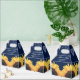 Personalizado rústico caja de favores matrimoniales azul marino con fondo de arpillera azul marino con girasoles. Personalice fácilmente esta caja de favores florales azul marino con los detalles de su evento.